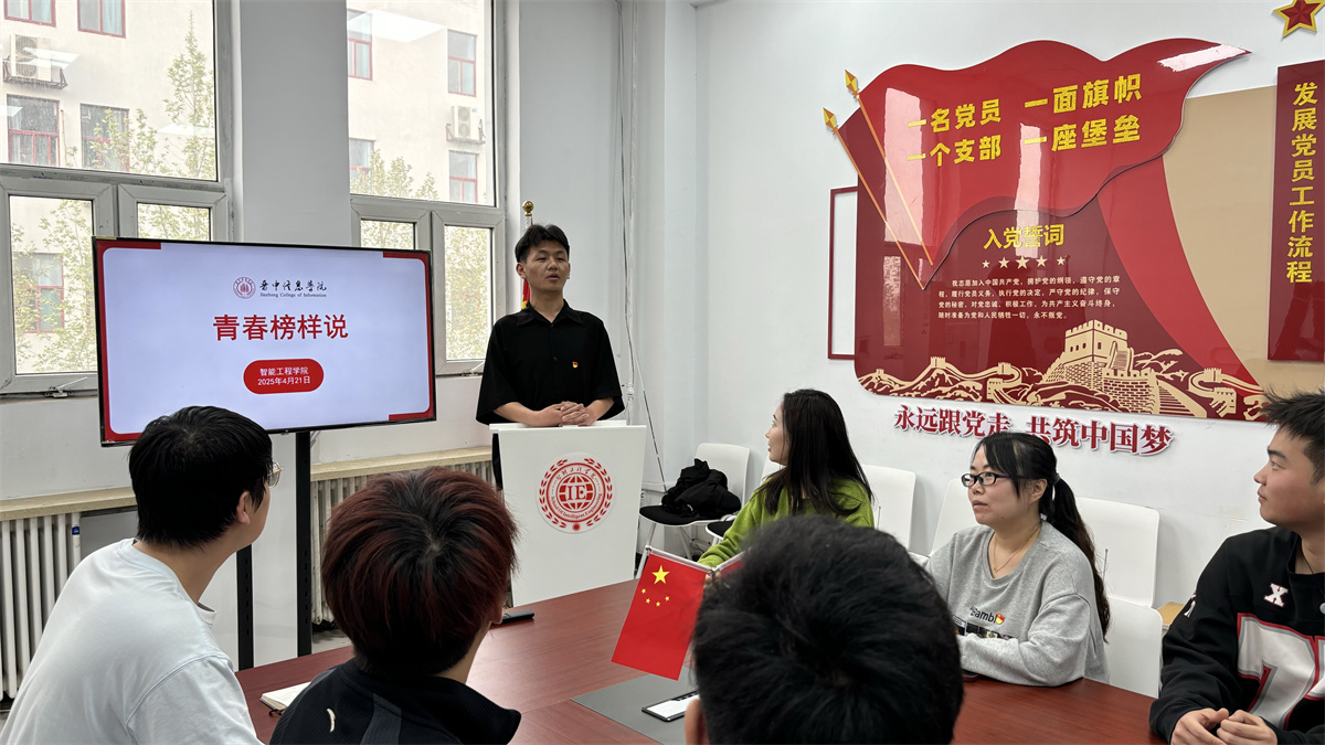 为充分发挥优秀学生的榜样引领作用,激励广大学生奋发向上、自强成才,智能工程学院学生第一党支部于4月21日,组织开展“青春榜样说”主题党日活动。此次活动邀请国家奖学金、国家励志奖学金获奖学生等先进典型进行经验分享,通过朋辈榜样的奋斗故事,传递青春正能量,营造浓厚学风氛围。