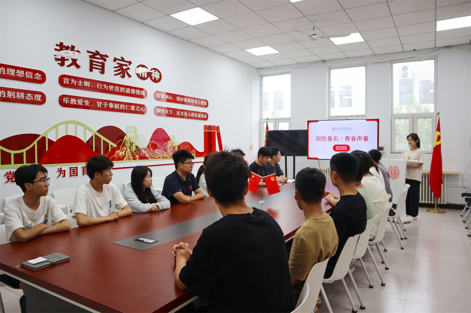 随着活动正式启幕,党支部邀请了学院内国防知识储备丰富、积极参与国防教育活动的学生代表,为大家带来精彩分享。学生代表们围绕国防知识、国防建设成就、新时代青年的国防责任等方面进行宣讲。有的学生深入剖析了我国先进武器装备的研发历程与重要意义,有的学生讲述了国防建设者们攻坚克难、默默奉献的感人故事,还有的学生结合国际形势,阐述了青年学生增强国防意识、投身国防事业的时代使命。他们以详实的资料、生动的语言,带领大家领略国防事业的宏伟壮丽,让在场学生深刻认识到国防是国家安全的基石,关乎每一个人的幸福生活。