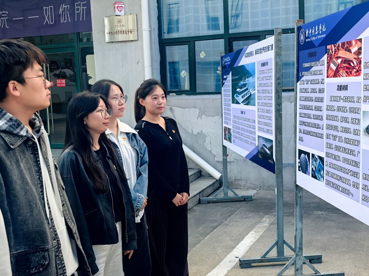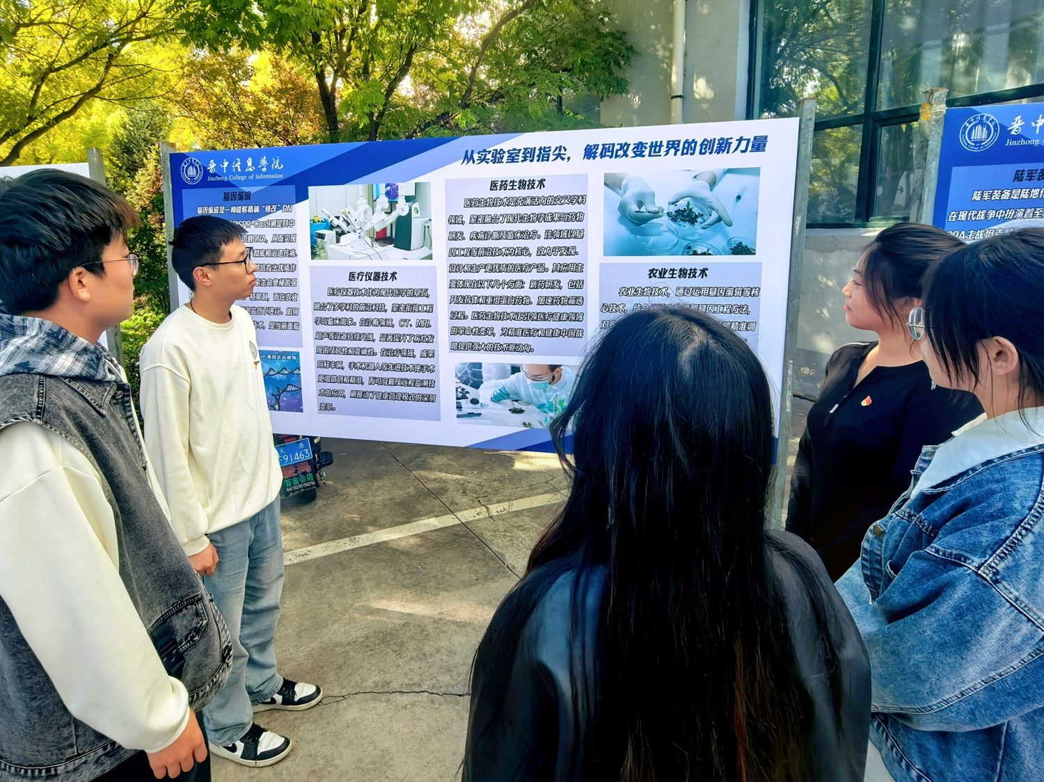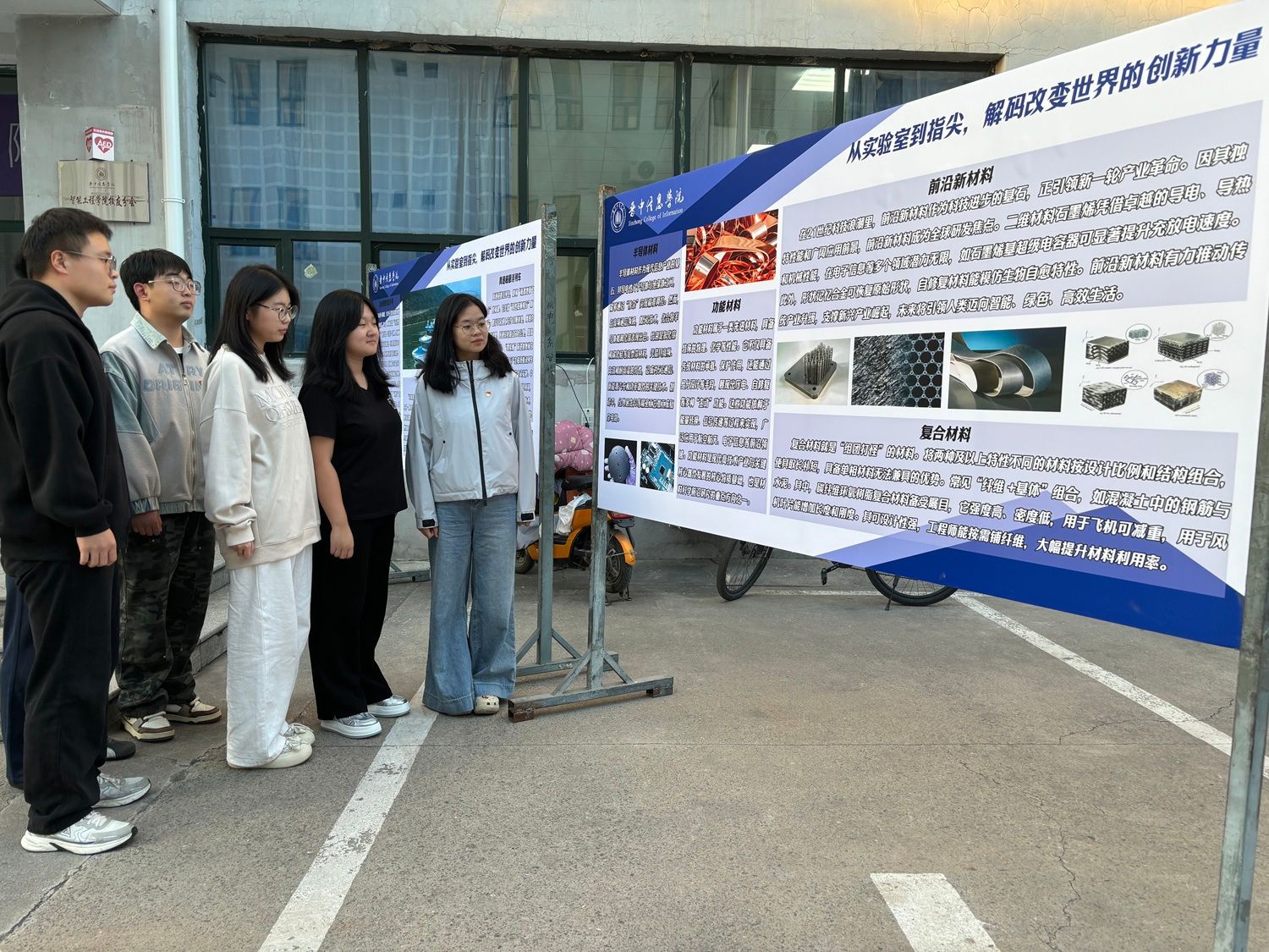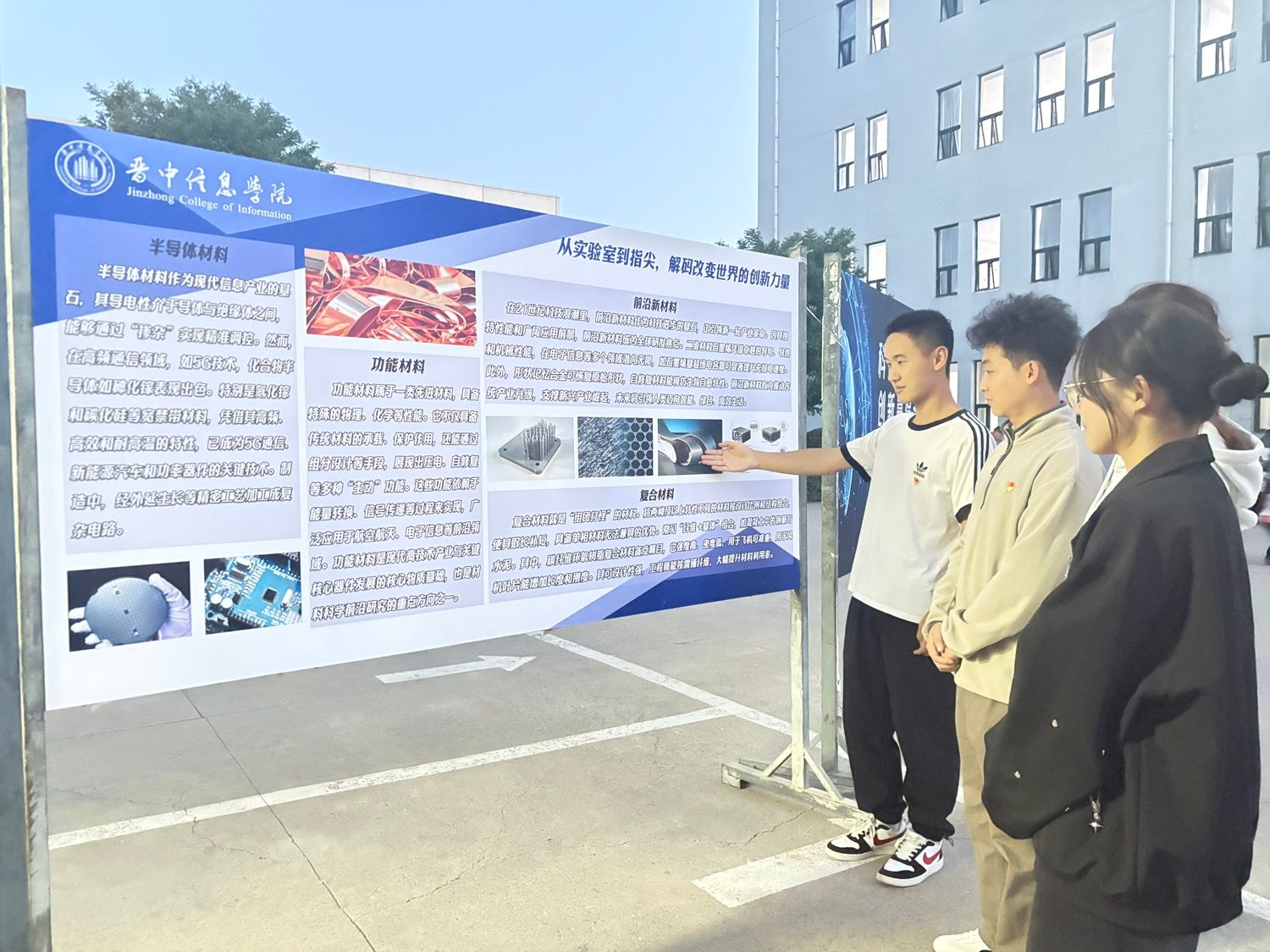 本次党日活动的核心环节是组织学生集中观看系列主题科普展板,并倾听现场讲解。学院精心策划,围绕国家重大科技战略、前沿科技动态、科学精神传承等主题,制作了内容丰富、图文并茂的系列展示,内容涵盖了“中国航天成就”“人工智能前沿”等多个板块。通过清晰的逻辑、生动的案例和直观的数据,系统展示了相关领域的发展历程、重大突破和未来趋势。