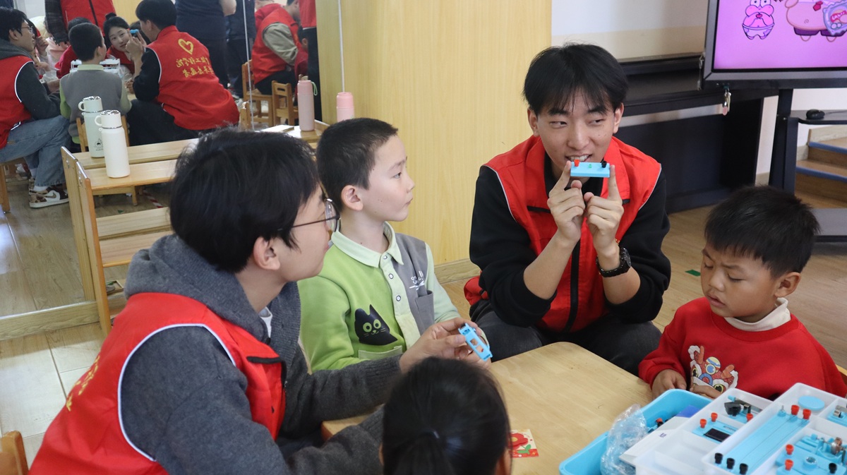 活动中,党员们始终面带微笑,耐心解答每一个问题,细心呵护每一份好奇心。遇到胆小的孩子,他们便蹲下身子轻声鼓励;实验器材出现小意外,他们迅速调整并安抚孩子情绪。这种无私奉献、关爱他人的行动,正是雷锋精神的生动体现。学生党员钱润雅说:“看到孩子们专注的眼神和开心的笑容,我觉得所有的准备都值得。能在他们心中种下一颗科学的种子,就是最有意义的事。”