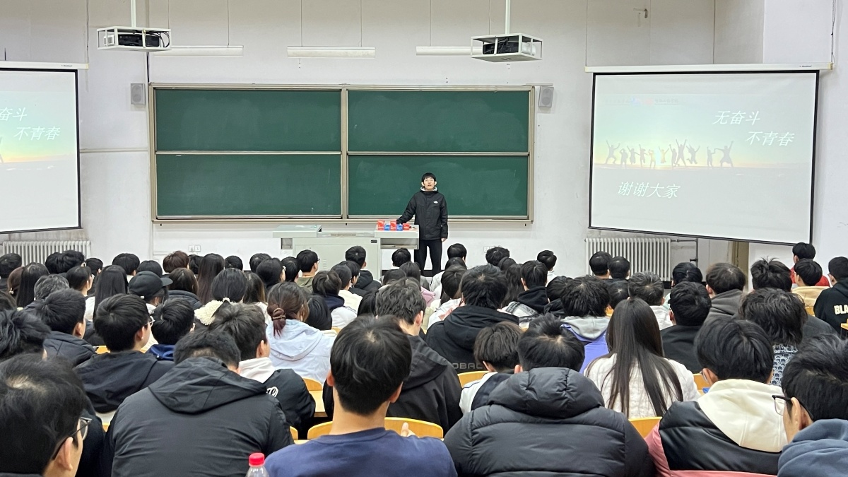 活动伊始,闫星宇老师开宗明义,点明“奋斗是青春最亮丽的底色,担当是时代赋予青年的神圣使命”这一核心主旨。他指出,个人的价值实现离不开时代的土壤。他将时代比作奔涌向前的“洪流”,而个人理想则是汇入其中的“溪流”。唯有将“小我”的追求主动、自觉地融入国家发展与民族复兴的“大我”格局之中,才能在历史的坐标系中找准自身定位,实现个人价值的升华与超越,避免在狭隘的自我空间中迷失方向。他结合社会现象,深刻剖析了“躺平”心态的实质与危害,指出这种看似“与世无争”的消极态度,实则是对青春资源的浪费、对个人潜能的辜负,更是对时代责任的逃避。他引导同学们进行深刻反思,呼吁大家要自觉抵制各种形式的消极懈怠思想,唤醒内心深处被寄予厚望的进取之心与舍我其谁的担当之志,完成一次彻底的“青春觉醒”。