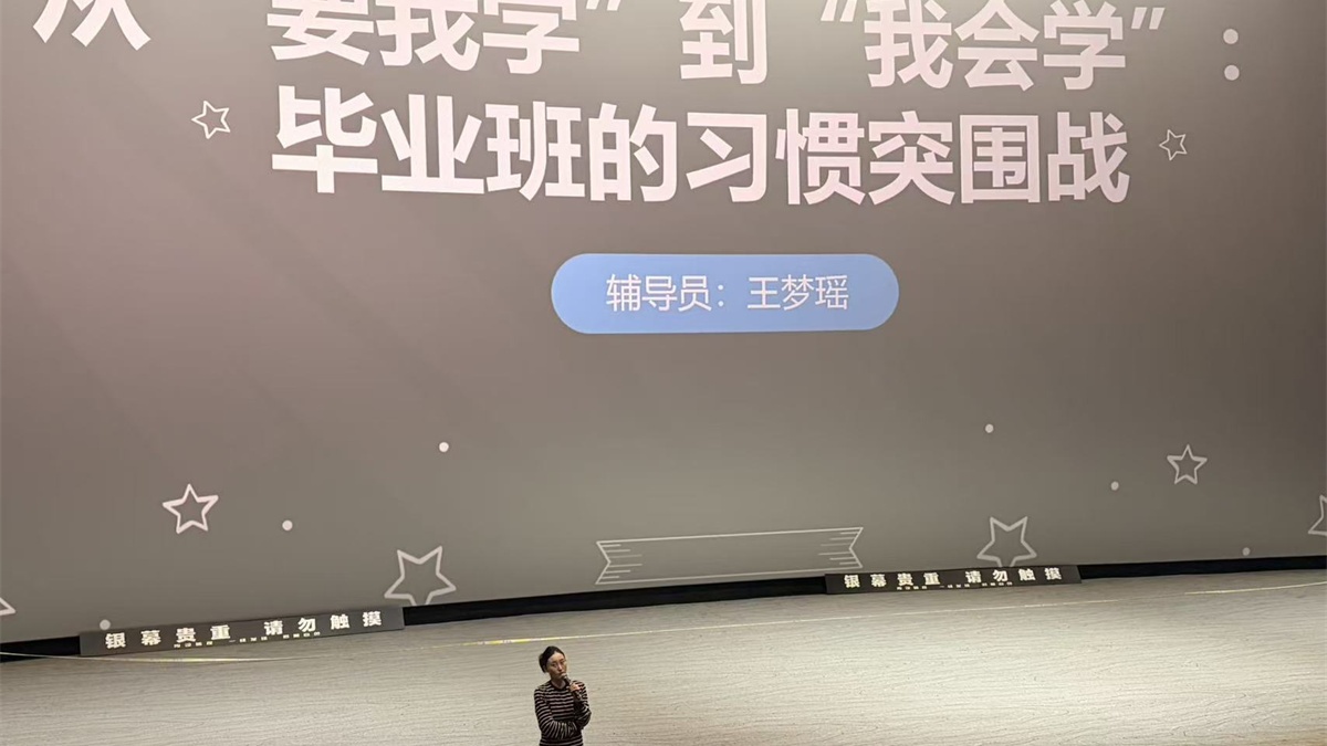 为帮助毕业班学子打破被动学习困境,实现学习状态的根本性转变,11月5日中午,智能工程学院辅导员王梦瑶老师于万画1号巨幕影厅开展“从‘要我学’到‘我会学’——毕业班的习惯突围战”辅导员说完满活动,围绕学习态度、方法、时间压力管理、目标设定与习惯养成五大核心维度,带领同学们开启主动学习的蜕变之旅,为冲刺考试注入动力。