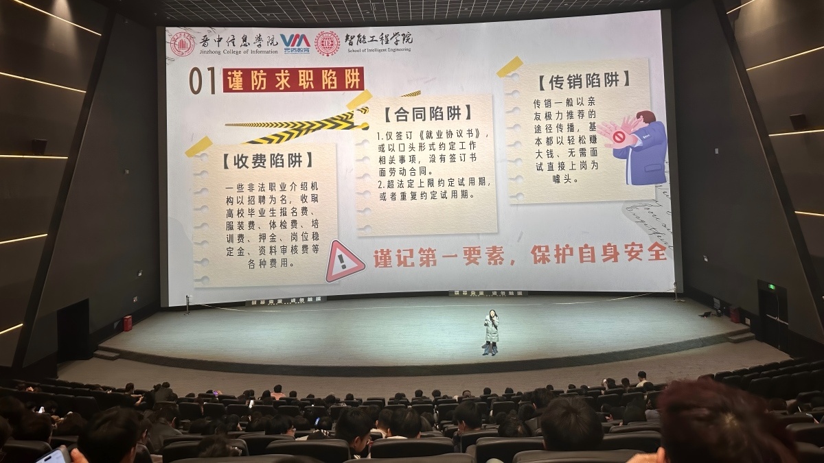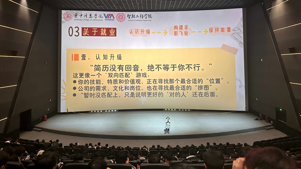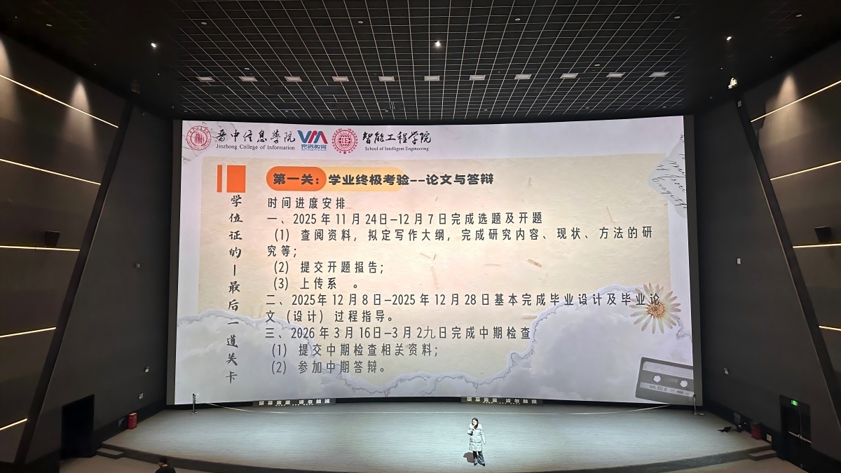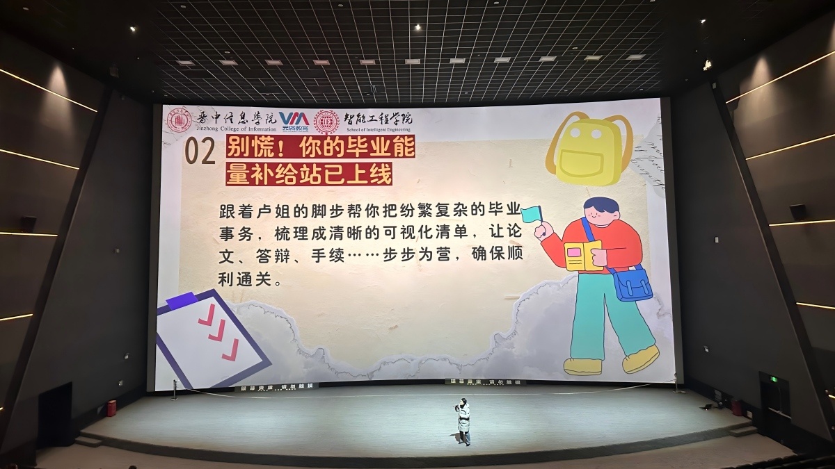 为帮助2025届毕业生在“临行前”完成最后一次装备自检,11月7日下午,智能工程学院辅导员卢翘楚老师于万画1号巨幕影厅举办辅导员说完满活动。通过围绕毕业通关策略、社会适应指南、求职安全防范、能量补给四大核心内容,为毕业班学子提供全方位的“通关装备升级包”,助力学子实现从校园到社会的平稳过渡。