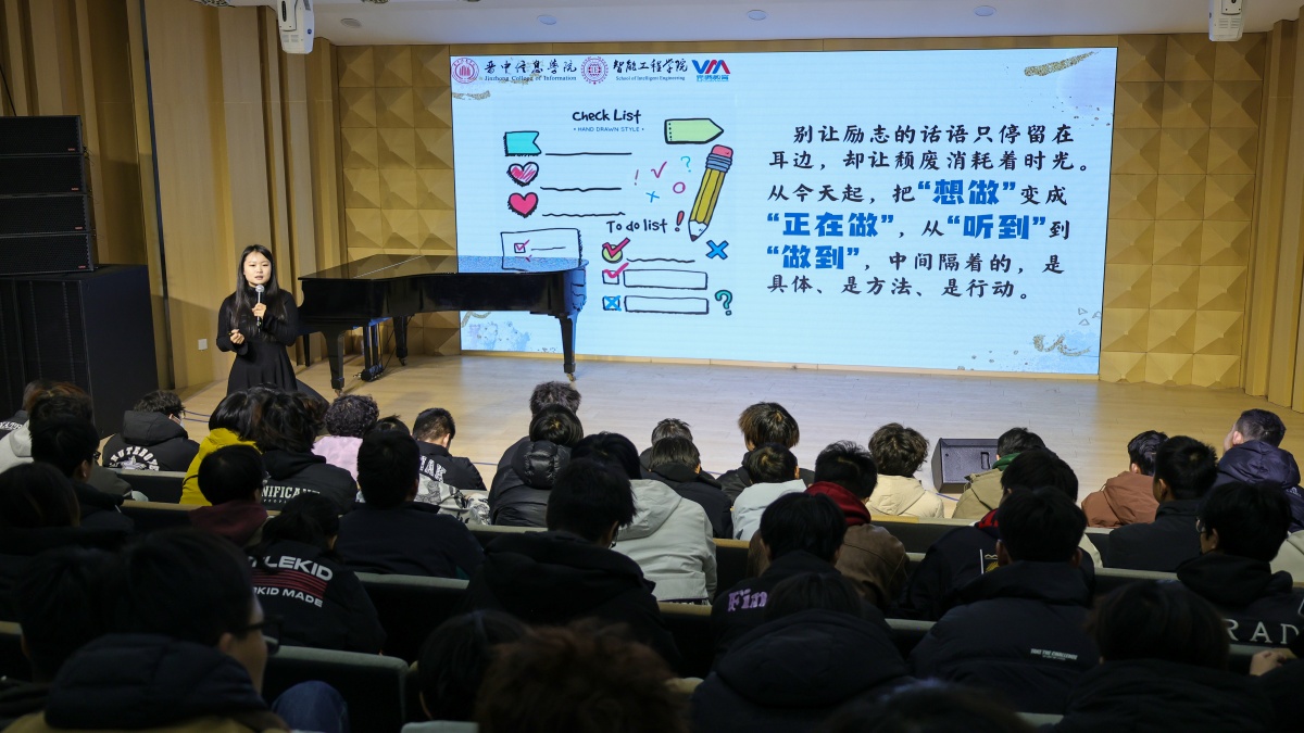 为帮助同学们跳出“立Flag—放弃—焦虑”的循环,将励志信念转化为实际行动,11月20日中午,智能工程学院辅导员任文姣老师在博学楼4′33″音乐厅开展了一场以“不要听着励志的话,做一个颓废的人”为主题的辅导员说完满活动。本次活动任老师用“戳痛点+教方法+定约定”的方式,引领同学们撕开“假励志”的外衣,让“拒绝颓废”从口号变成触手可及的行动。