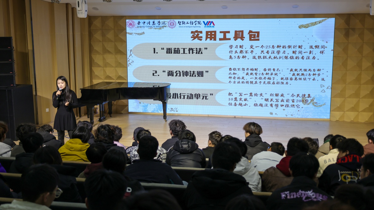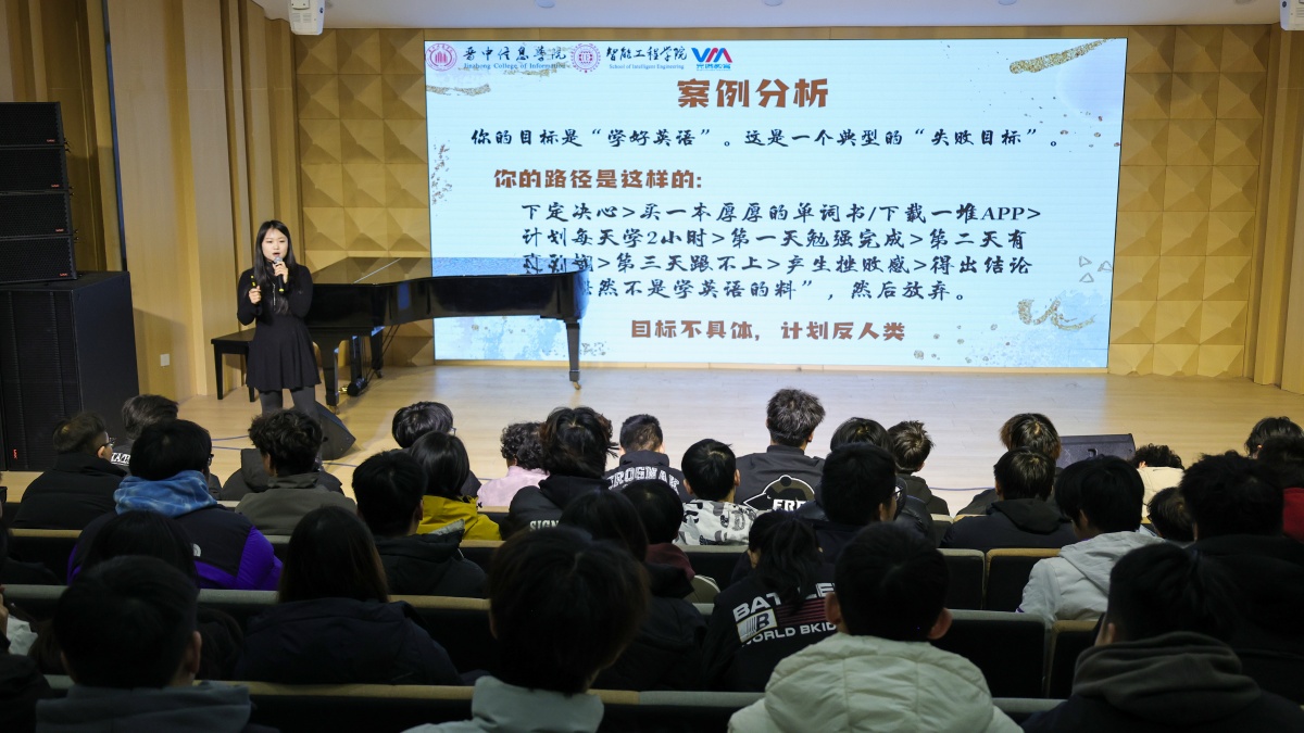 “别让模糊的目标打败你!”针对学生“目标太大无从下手”的困惑,任文姣老师现场引入“SMART原则”,结合同学们的失败经验,手把手指导大家将“学好英语”“提升成绩”等抽象愿望,转化为“2个月背完1000个四级核心词,每日45分钟”“每周攻克3个高数难点,周末复盘”等具体可衡量的计划。同时,她还分享了“番茄工作法”“两分钟法则”等实用工具。说道:“不用等‘万事俱备’,哪怕先做2分钟小事,也能打破‘拖延循环’。”现场学生边听边记,不少人当场在笔记本上写下了“本周先完成3个小任务”的初步规划。