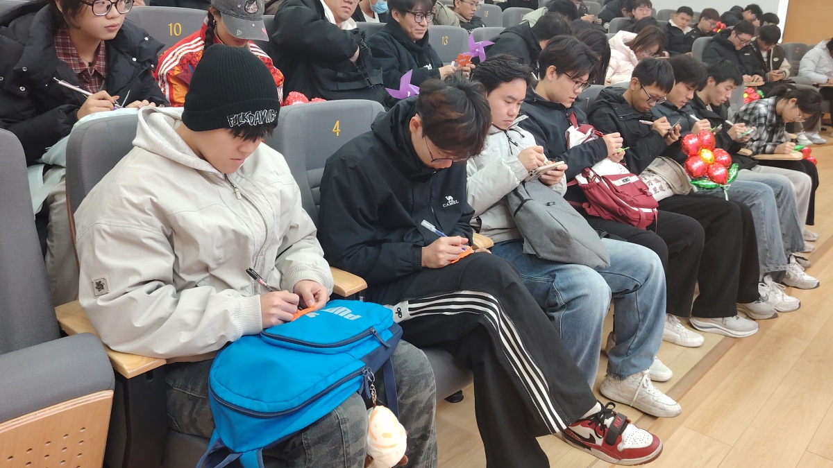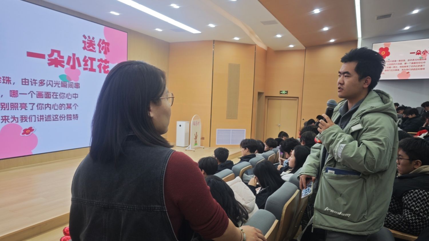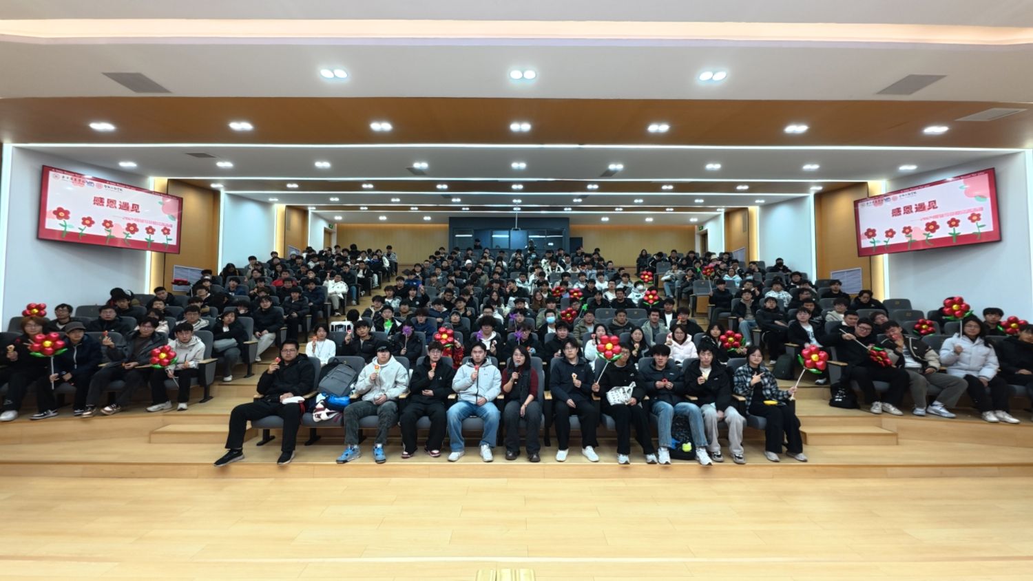 为深化感恩励志教育,引导同学将个人成长与情感认同深度融合,11月20日中午,智能工程学院2024级辅导员国画老师在博学楼ST报告厅开展了以“一朵小红花的旅行:记·绽·赠”为主题的说完满活动。本次活动,通过沉浸式体验、故事分享、手工创作、合唱传情等多个环节,让2024级学子在温暖互动中重温成长路上的点滴善意,从感知恩情到主动表达,将“感恩于心、回报于行”的人生态度根植于心。