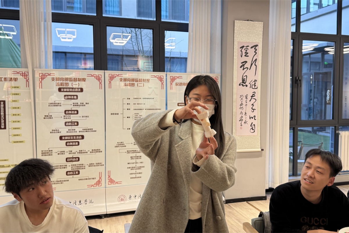 随着主持人的引导,活动进入创意实践环节。第一环节的徽章创作中,有人用印章印下“求知若渴”的名言,搭配芯片、齿轮图案,绘出智能工程学子的追梦初心;有人以马克笔勾勒未来,将信念藏进徽章制作,再经徽章机压制,让抽象的理想变成可随身携带的信物。在创意实践中充分发挥自己的创新潜能,将科技元素与美学思维巧妙地融合。