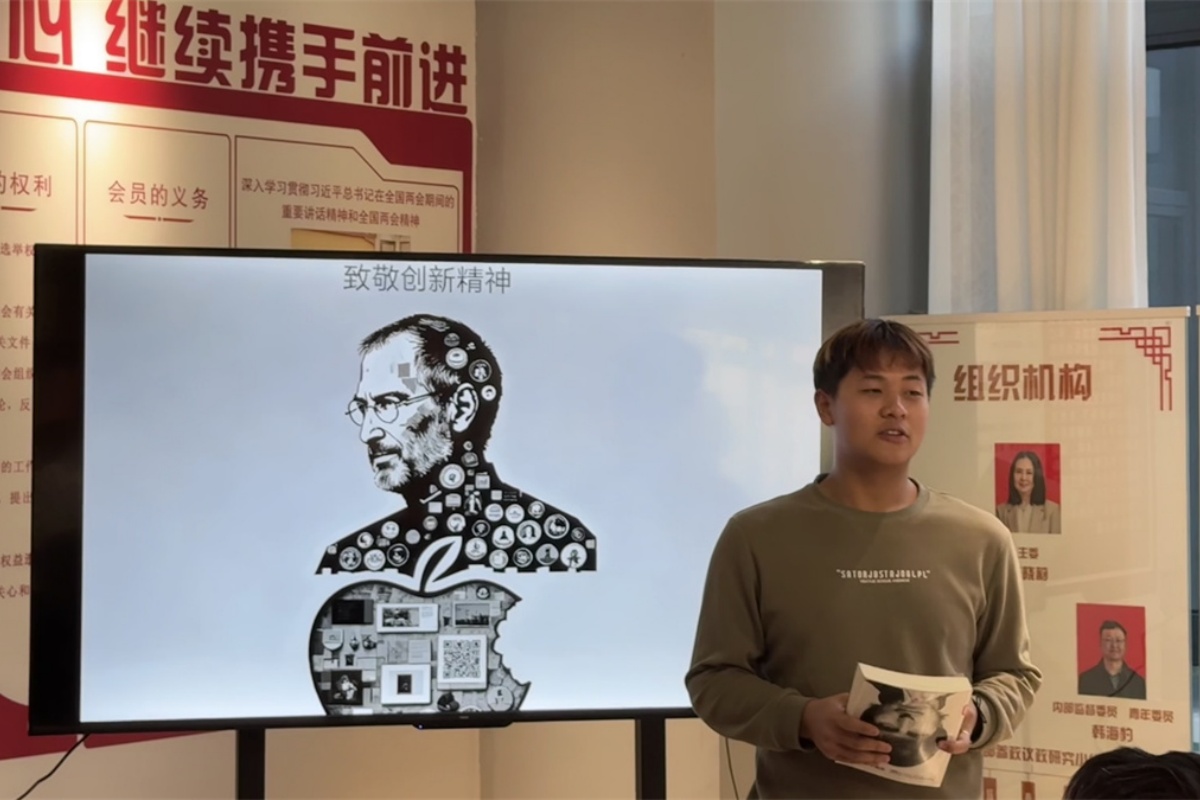 活动开场,主持人手持《史蒂夫・乔布斯传》走向台前,书页翻动间,将乔布斯在车库创业时对细节的极致苛求、研发iPhone时“删繁就简”的美学坚持娓娓道来——那些曾被质疑不切实际的设计理念,对完美近乎偏执的打磨,最终让苹果产品超越科技本身,成为时代的美学标杆。今天我们读这本传记,不只是回顾一位天才的人生,更是要从他的故事里找到坚持热爱的勇气,从他的设计哲学里学会发现独特的眼光。