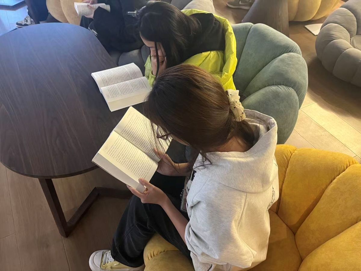 本次活动,美德不再是手册上的字,而是即将进入学子们的生活中,成为学子们生活中的一部分,定格在校园生活的一个个瞬间。午后的阳光透过玻璃窗,洒在临窗的座位上。几位同学围坐一圈进行阅读,他们眼神专注,每个人都在思考如何创作自己手册的封面以及自己应该如何让这本手册发挥到极致让本次活动深入到每个人的心中与行为中,桌面上,《富兰克林传》停留在他每一日的“十三项美德”修炼,每次自我标记,不断地改进的行为仿佛在期待同学们在21天的美德中的优秀表现。
