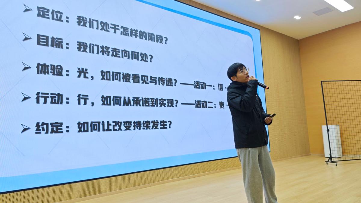 为助力大二学生突破认知瓶颈,将诚信内化为内心准则、把责任延伸为社会担当,12月12日下午,智能工程学院辅导员闫星宇开展了以“信·光引航 责·行致远——解锁青春里的‘诚’与‘担’”为主题的辅导员说完满主题年级会。本次年级会紧扣大二学生“认知拓展期”与“习惯养成期”的成长特点,以“责任落地”为切入点,以“诚信共鸣”为落脚点,通过创意体验与实践任务相结合的形式,引导学生建立“学术诚信→学风共建→社会服务→安全守护”的联动认知,让抽象的价值理念转化为可感、可行的日常行动。