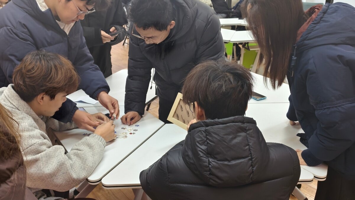 12月19日下午,机器人2402班团支部于杏花书院Lucky Room开展了主题为“红色记忆,拼出辉煌”的完满团支部活动,全体同学积极参与,在趣味互动中感悟红色文化的厚重底蕴,在协作共进中凝聚支部向心力。本次活动以国家公祭日为重要背景,将红色文化传播与趣味实践相结合,精心设置爱国拼图、革命路线绘画、历史图片排序三大环节,既兼顾活动的趣味性与参与感,又实现红色知识学习与团队协作能力提升的双重目标。此次完满团支部活动创新红色文化传播形式,打破传统学习模式的局限,让同学们在动手实践中重温革命历史、感悟红色精神,不仅提升了团队协作能力,更激发了同学们的爱国热情与责任担当,为完满教育发展注入红色活力。
