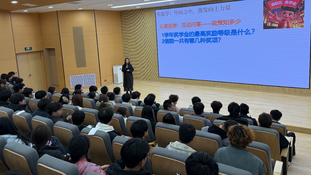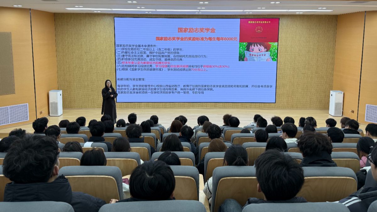 活动首章以“奖促学”为核心,打破唯分数论的单一评价视角,明确赞赏探索未知的勇气、面对困难的坚韧、团队协作的担当与服务他人的热忱,让每一份真实努力都被看见与肯定。现场还设置互动问答环节,详细解读奖学金评定政策,从综合素质测评的计算细则,到国家奖学金、国家励志奖学金、信院励志奖学金及晋中信息学院奖学金的申请条件、奖励标准、评选要求,逐一清晰阐释,明确学业成绩、完满表现、体测达标等核心要求,让同学们找准努力方向,以奖项为激励,激发向上的内生动力。