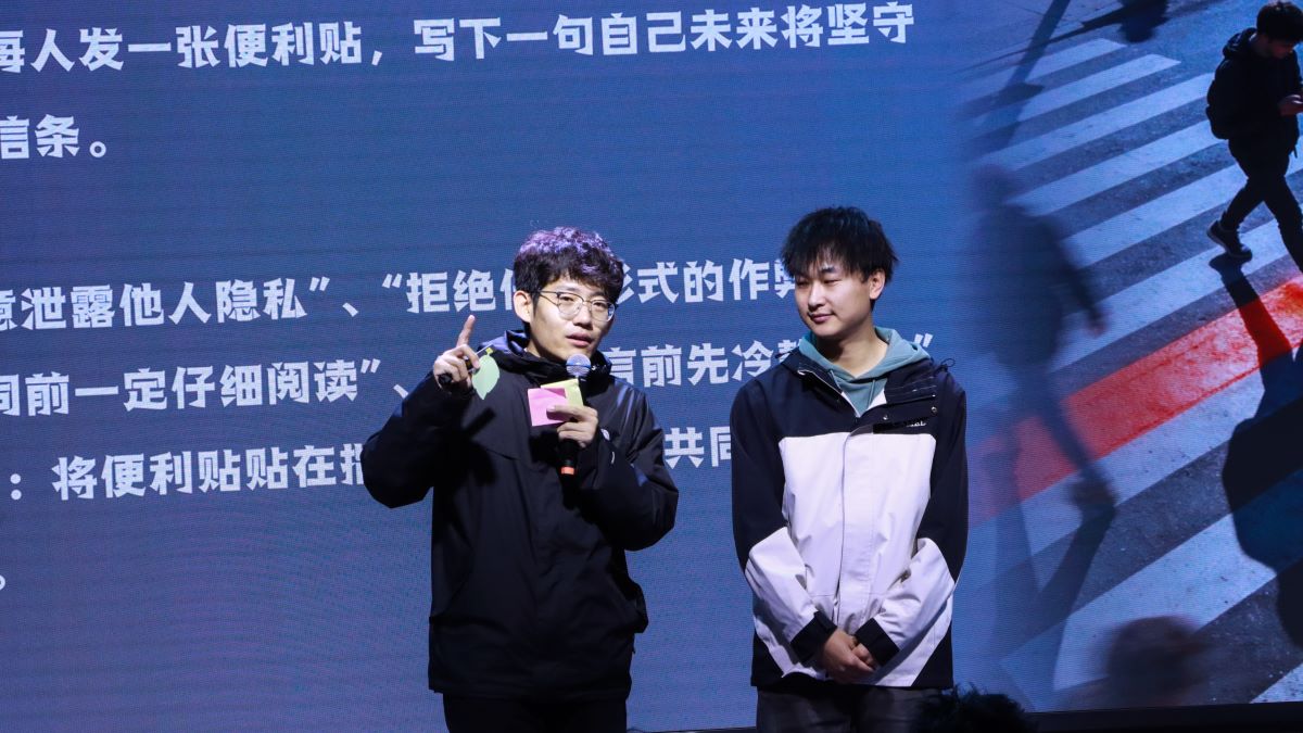 活动中,部分学生最初写下“不熬夜”“不挂科”“多运动”等生活目标,闫老师及时引导,强调本次活动的法治内核,让学生重新聚焦法律规则与行为底线。最终,“不随意泄露他人隐私”“拒绝任何形式作弊”“不在网上发表不当言论”“远离刷单等违规兼职”“宿舍禁用大功率电器”等一系列朴实又走心的法治誓言贴满规则墙。闫老师表示,这些誓言看似诙谐,背后均对应真实法律案例,规则从来不是束缚成长的“紧箍咒”,而是守护人生的“复活甲”,唯有坚守规则,才能在成长道路上行稳致远。