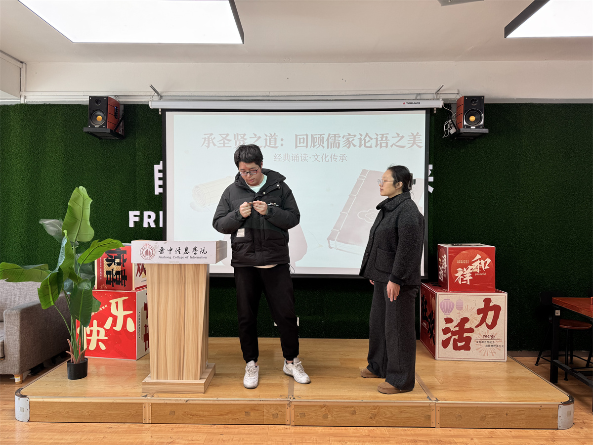 为引导学子从中华优秀传统文化中汲取修身力量,传承儒家经典的精神内核,3月20日下午,晋中信息学院智能工程学院经典阅读之品传记·践美德系列活动启幕,一场以“承圣贤之道:回顾儒家论语之美”为主题的沉浸式品读活动,在杏花书院表达力大厅顺利开展,让《论语》中的智慧箴言,成为学子品格修行路上的精神指引。