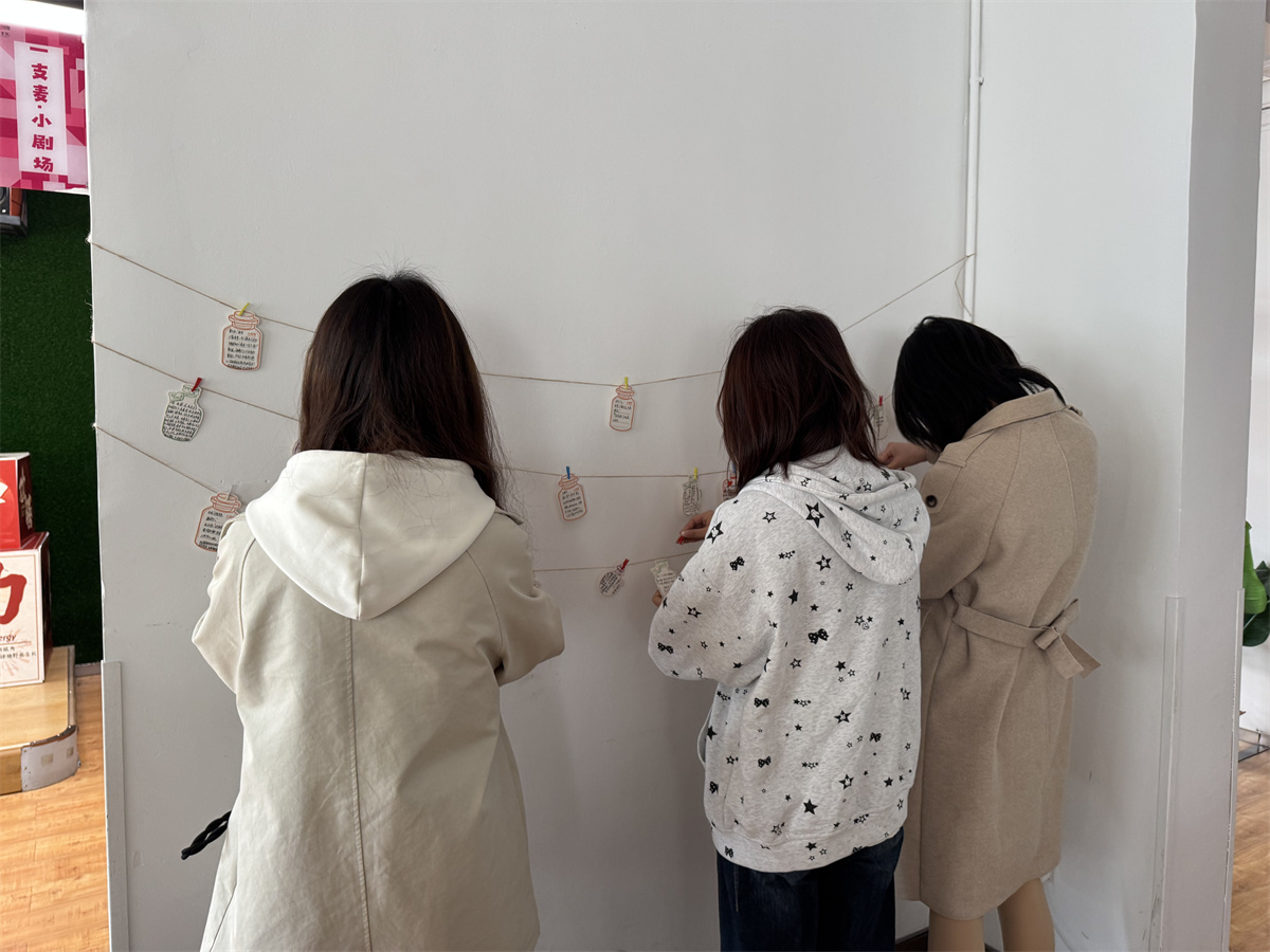 待所有学生完成书写、上交卡片后,主持人随机抽取了多篇作品进行朗读。当朗朗的《论语》原文、真挚的白话释义与深刻的青年感悟回荡在活动现场,每一位学生都深受触动。那些朴素而真诚的文字,既有对经典的深刻解读,也有对青春的美好期许,更有对品格修行的坚定决心,让现场的每一个人都感受到了经典的力量与青春的思考。朗读结束后,工作人员将所有卡片布置成“思想墙”,一张张卡片整齐排列,成为杏花书院里一道独特的风景线,也让经典智慧在校园中得以可视化呈现、常态化传播。