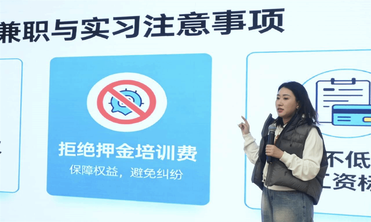 活动伊始,贾漫老师以法律离你的校园生活有多远三连问破冰:“急需用钱时看到无抵押广告点不点?租房时房东让直接签合同看不看?朋友让帮忙刷单帮不帮?”现场举手互动瞬间点燃了学生的参与热情。随后,宣讲围绕“网络兼职诈骗、校园贷陷阱、合同纠纷”三大板块层层展开。