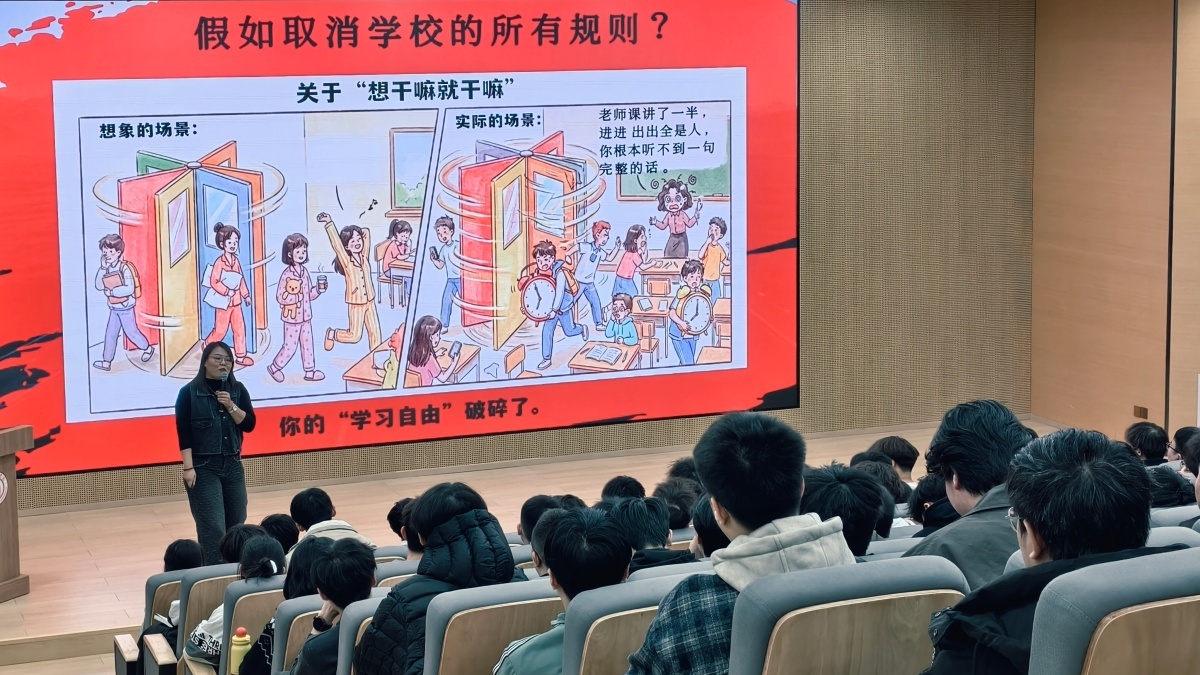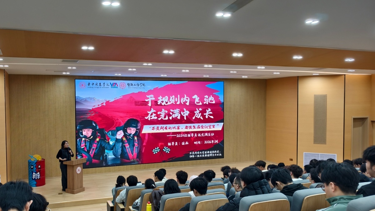 为引导同学们树立正确的规则意识,明晰规则与自由的辩证关系,助力校园完满教育落地生根,3月25日下午,智能工程学院辅导员国画老师在ST报告厅开展了以“于规则内飞驰,在完满中成长”为主题的辅导员说完满活动。本次活动结合影视案例、互动思辨、实践分享等形式,引导同学们在思辨中明晰规则内涵,在分享中锚定成长方向,为新学期的校园生活注入了满满的正能量。