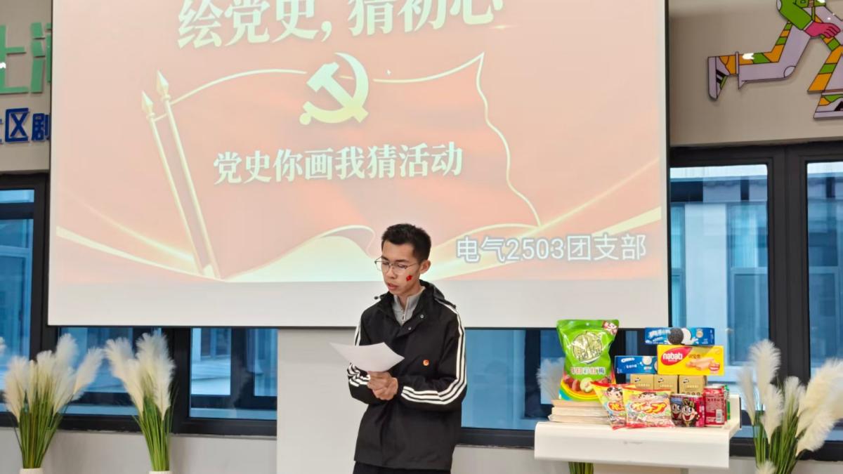 为深入探索创新党史学习教育形式,让红色基因融入血脉、让革命精神代代相传,4月7日下午,电气2503班在上河书院205圆心·青春社区剧场举办“绘党史,猜初心”——你画我猜重温党史回忆主题活动。活动以“绘画”为载体、以“猜谜”为形式,将党史知识与趣味互动深度融合,在轻松愉悦的氛围中回顾党的光辉历程,感悟初心使命,凝聚奋进力量。经过1个小时的激烈角逐,活动圆满结束。活动还为获奖小组颁发了奖品。本次活动不仅让同学们收获了荣誉,更收获了知识和团队友谊,今后将继续加强学习,牢记初心使命,以更加饱满的热情投入到学习中。此次“绘党史,猜初心”你画我猜活动,创新了学习的形式和载体,将趣味性与知识性、教育性有机结合,让学习从“被动听”变为“主动学”,从“枯燥学”变为“快乐学”,有效激发了同学们的积极性和主动性。让红色文化浸润人心,让革命精神薪火相传,不忘初心、牢记使命,踔厉奋发、勇毅前行,贡献红色力量。