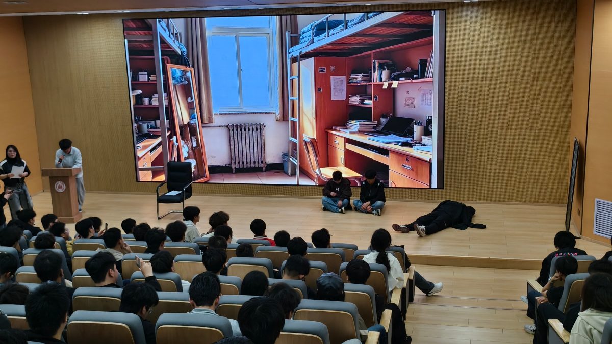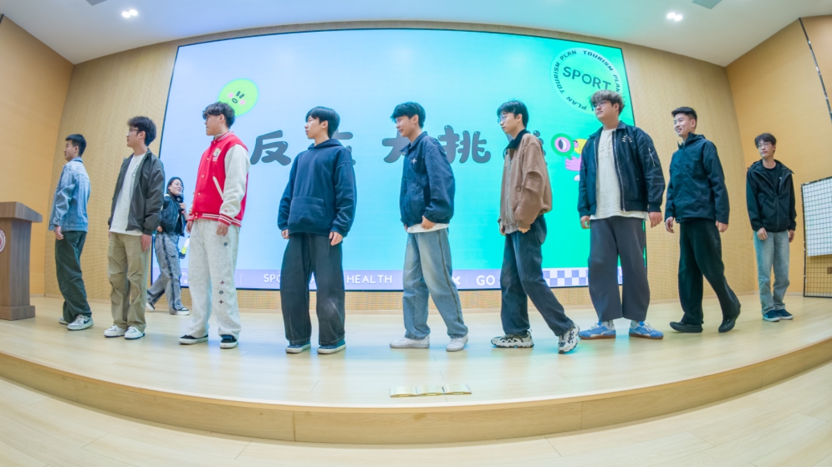 有了意识与方法,长久的坚持才是关键。为让学生更直观地理解自律与健康的关联,活动现场上演了一场贴近大学生活的原创情景剧。剧中,一位同学每天窝在宿舍昏睡,逃课、外卖不离手,从不运动,渐渐变得精神萎靡、面色苍白,期末考试多门挂科;而另一位同学坚持自律,每天按时起床晨跑,合理分配学习与运动时间,不仅身姿挺拔、精力充沛,还凭借优异的成绩获得奖学金。演员们生动演绎了自律运动与懈怠躺平两种截然不同的大学生活状态,通过鲜明的状态对比,直观展现出良好生活习惯对学习效率、精神面貌的深远影响,引导同学们反思自身不足,理解自律与自由的深刻内涵,台下学生看得十分投入,有同学悄悄和身边的伙伴说:“这简直就是我和身边同学的真实写照,以后真的不能再颓废下去了。”情景剧结束后,国画老师结合剧情,寄语同学们,青春逢盛世,奋斗正当时,希望大家摒弃“拖延”“懈怠”的不良习惯,主动走出宿舍、走向操场,把运动融入日常,用自律浇灌成长,以强健的体魄迎接每一个挑战。