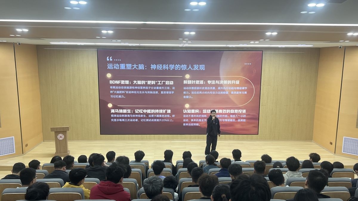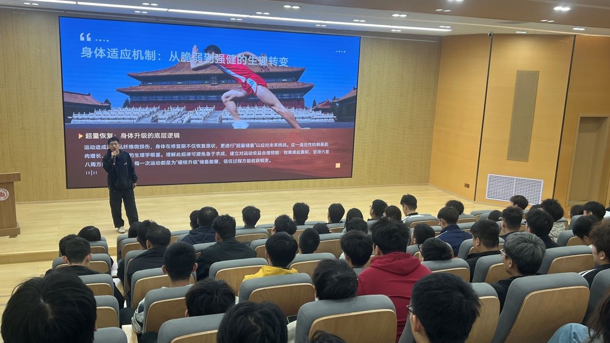 在交流互动环节,同学们结合自身经历分享运动困惑与健身计划,闫老师逐一答疑指导,帮助大家根据体能与作息定制个性化方案,远离运动损伤、避开锻炼误区,现场洋溢着积极行动、向上向善的青春氛围。