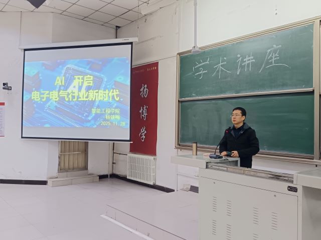 2025年10月28日晚7点,晋中信息学院智能工程学院特邀杨铁梅教授开展题为“AI开启电子电气行业新时代”的学术讲座。本次讲座由智能电气教研室主任樊建强主持,学院师生齐聚现场,共赴一场人工智能与电子电气深度融合的学术盛宴。