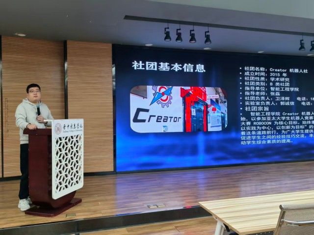 开幕式上,韩海豹院长率先发言,他高度肯定了Creator机器人社自2015年成立以来的丰硕成果,充分彰显了学校学子的实践创新活力,韩院长表示,本次“智创启航杯”竞赛延续了社团“以理论为基础,以实践为中心,以创新为目标”的核心宗旨,聚焦电控、EDA、机械、创新创意四大核心领域,既是对学校“第二课堂”建设的深化推进,更是为学子搭建的理论转化实践、锤炼专业技能的优质平台;随后,窦晨、李瑞金、张磊、贾维丁四位老师分别结合自身专业视角与教学经验,对本次赛事的价值与意义给予高度认可,他们纷纷为参赛学子送上寄语,鼓励大家以赛促学、勇于突破创新,在竞技比拼中交流经验、共同成长,全力以赴展现扎实的专业素养与鲜活的创新风采;最后,Creator机器人社社长卫泽辉上台,为现场师生详细介绍了赛事整体安排,重点阐释了四大赛道的特色亮点,并对各赛道的评分细则与规范流程进行了全面说明,让参赛学子对赛事要求有了清晰认知,为后续比拼做好充分准备。
