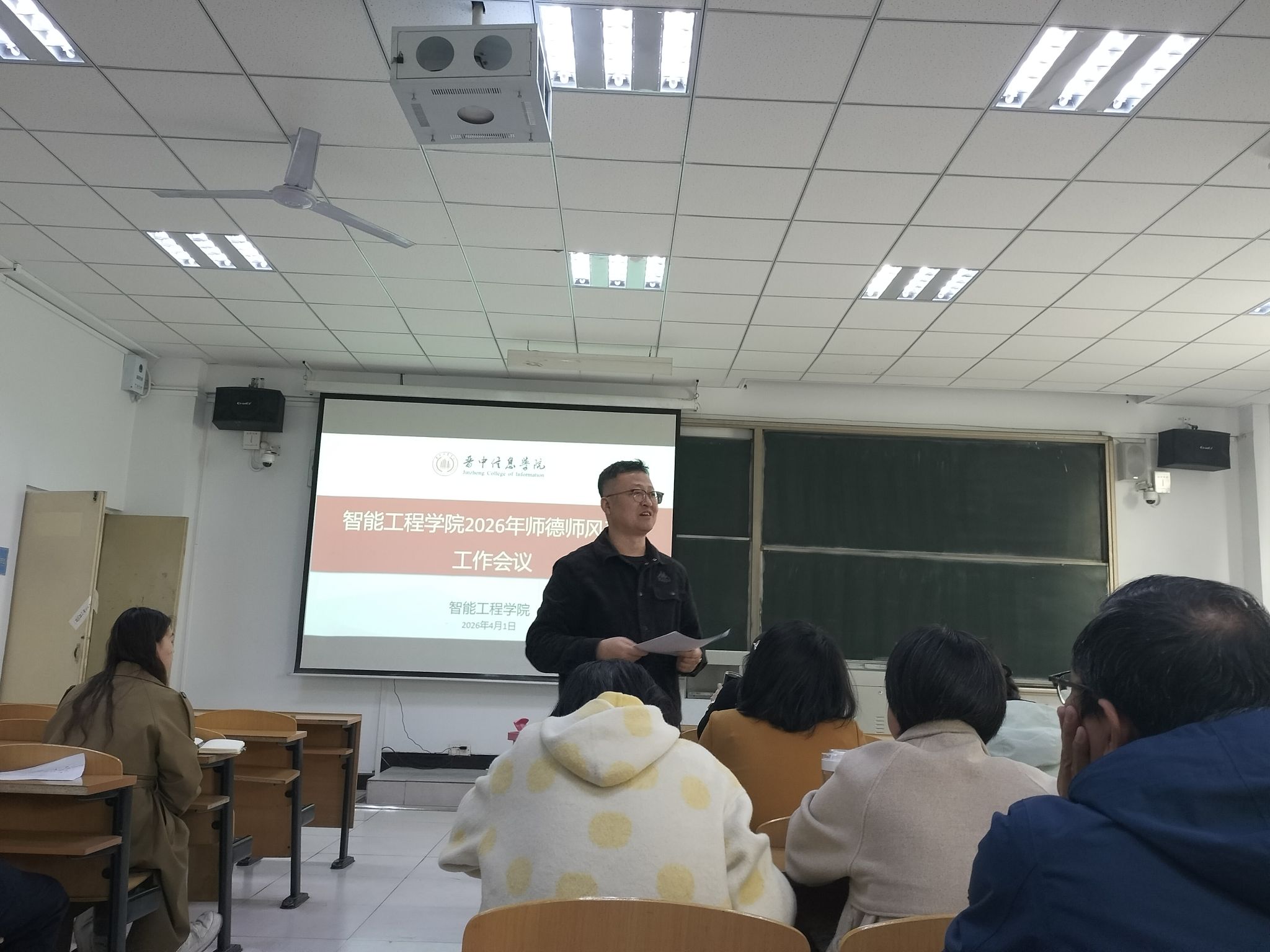 为进一步规范学院各项工作流程,强化教学管理效能,夯实教育教学质量根基,2026年4月1日下午,智能工程学院在六教204会议室召开教学工作例会。马艳娥院长围绕学校发展战略、师德建设等重点工作作出全面部署,副院长韩海豹就教学相关工作作补充强调,确保各项工作落地落细。