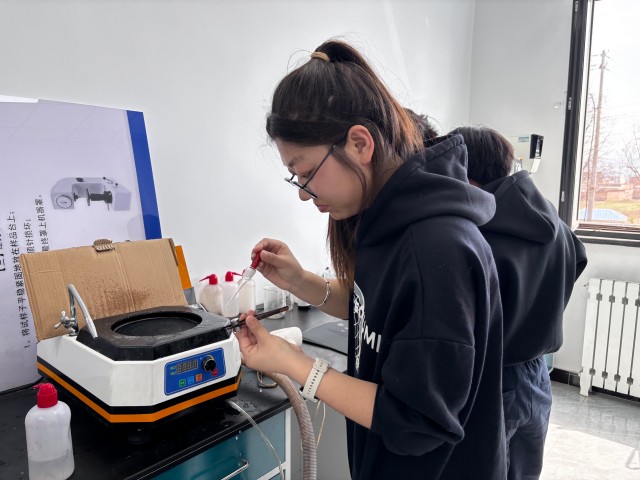 本次大赛聚焦专业核心实操技能,全程围绕试样磨制、抛光、腐蚀、显微组织观察四大关键环节展开竞技,全面检验学生对金相试样制备全流程的规范掌握与实操水平。比赛过程中,参赛选手全神贯注、规范操作,有条不紊地完成每一项工序:试样磨制时精准把控力度与方向,层层打磨保障试样表面平整;抛光环节细致操作,让试样达到无划痕、光洁透亮的标准;腐蚀环节严格把控试剂浓度与浸蚀时间,清晰呈现金属显微组织;最后借助显微镜完成显微组织观察与辨识,以扎实的操作功底展现出良好的专业素养。