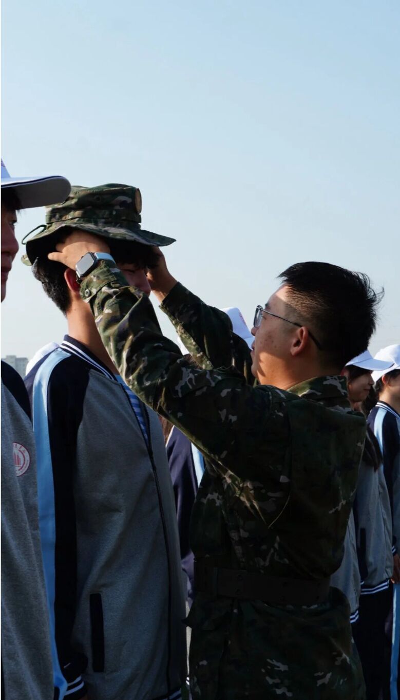 我理解新生的紧张与期待,休息时会分享选课和社团经验;没有距离感的关怀,藏在每一次“记得补水”“再坚持30秒”的叮嘱中。最奇妙的成长,莫过于活成曾经照亮自己的那道光。迷彩之下,我与他们共同书写这段铿锵青春。