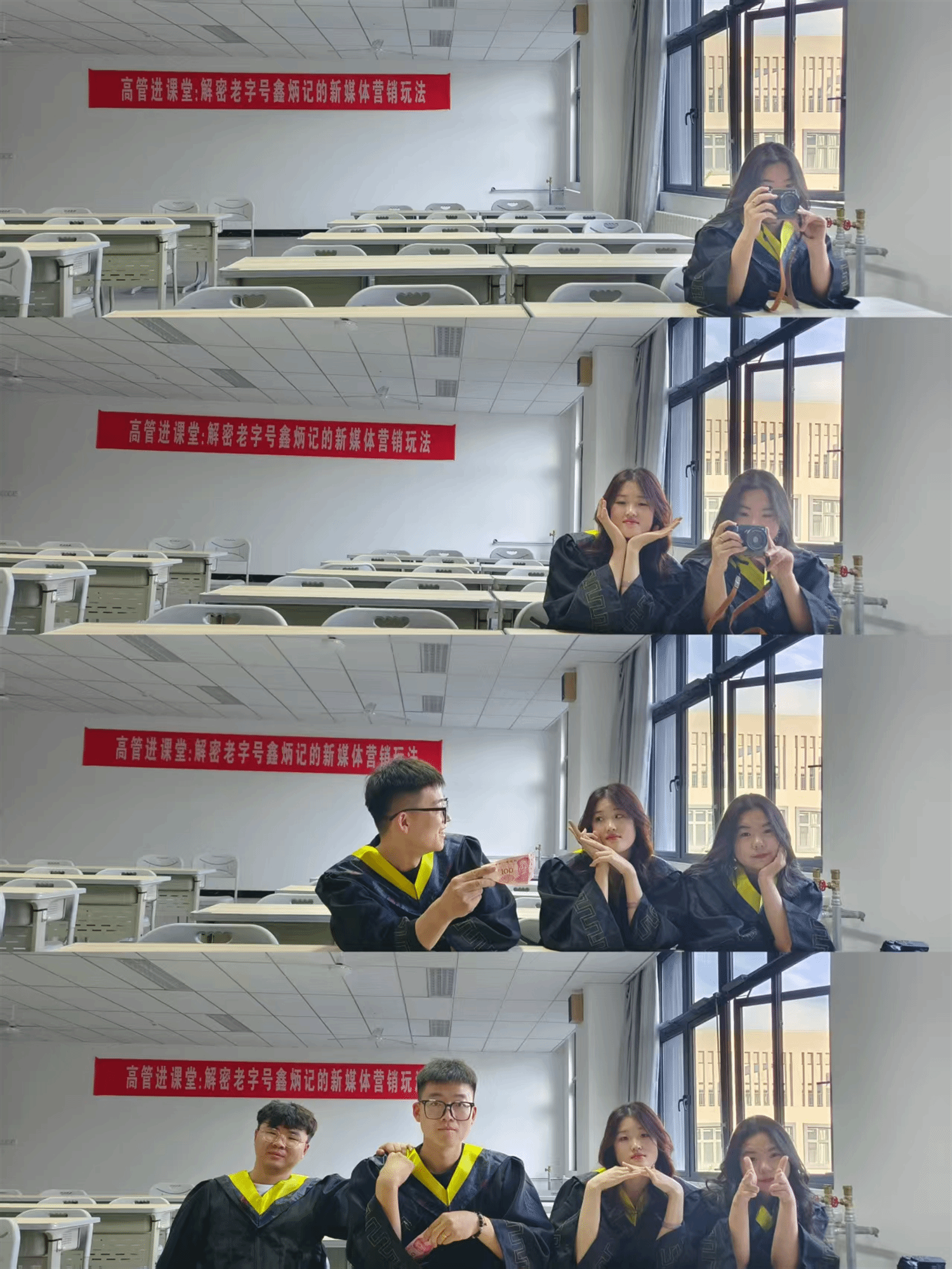 而疫情封寝期间的经历,更成为她宣传生涯中最深刻的记忆。当时,学生们无法外出,学院公众号成为大家了解外界信息、缓解焦虑的重要窗口。刘阳与宣传部团队主动担责,依托在外做志愿者的老师传回的照片与信息,第一时间撰写推文、更新动态,让同学们及时掌握校园防疫情况与暖心故事。“那几篇推文在朋友圈被大量转发,浏览量创了我加入宣传部以来的新高,后来还拿了奖。”回忆起这段经历,她仍非常激动。大二这一年,是她“最累也最快乐”的一年——不仅写作水平、组织协调能力显著提升,更与团队伙伴结下了“一起熬夜、一起获奖”的深厚友谊,为后续成长积累了宝贵的“软实力”。