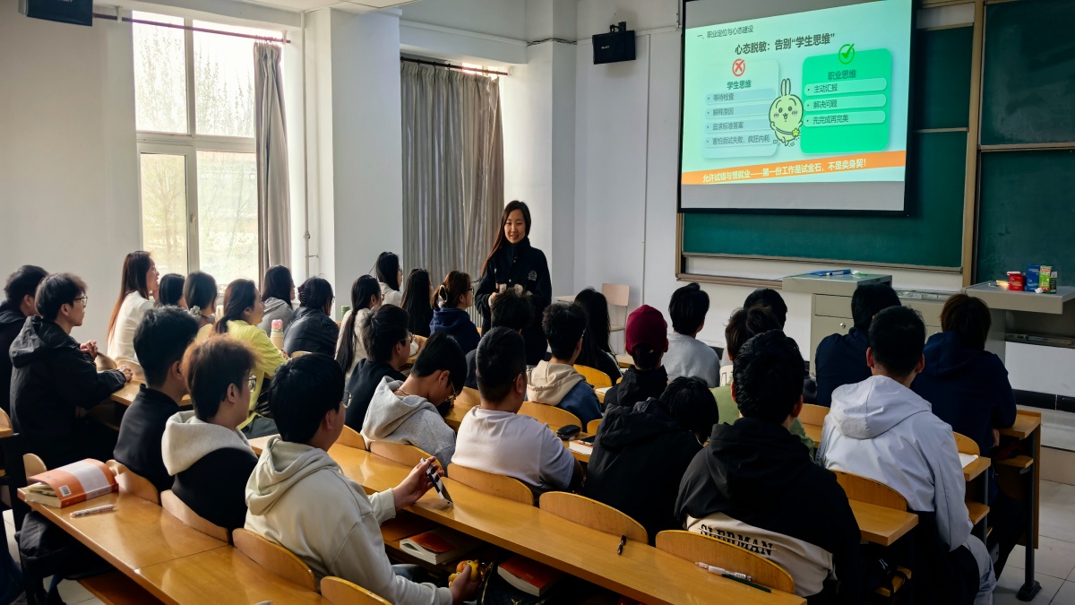 活动中,辅导员指出,大二阶段正处于专业学习深化与职业意识萌芽的关键交叉期,不少同学存在“就业还早”“创业太远”的观望心态。通过展示近三年毕业生就业数据和典型成长案例,辅导员系统分析了当前就业形势与行业用人趋势,引导同学们意识到:“就业准备不是大四才开始的任务,而是从大二就要启动的系统工程。”