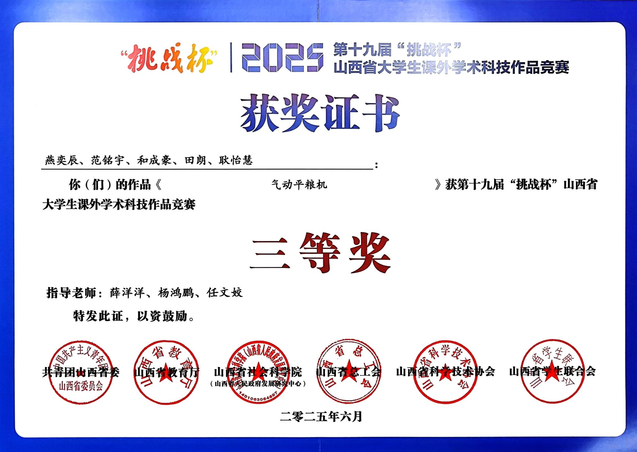 学科竞赛作为培养学生创新精神和实践能力的“第二课堂”,是学生将理论知识转化为实践应用的重要平台。薛洋洋老师深知学科竞赛的育人价值,在课堂教学中积极鼓励学生参与各类高水平竞赛。近年来,他先后带领学生参加了“睿抗开发者大赛”“西门子杯中国智能挑战赛”“挑战杯课外学术作品竞赛”等多项重要赛事,取得了丰硕成果。
