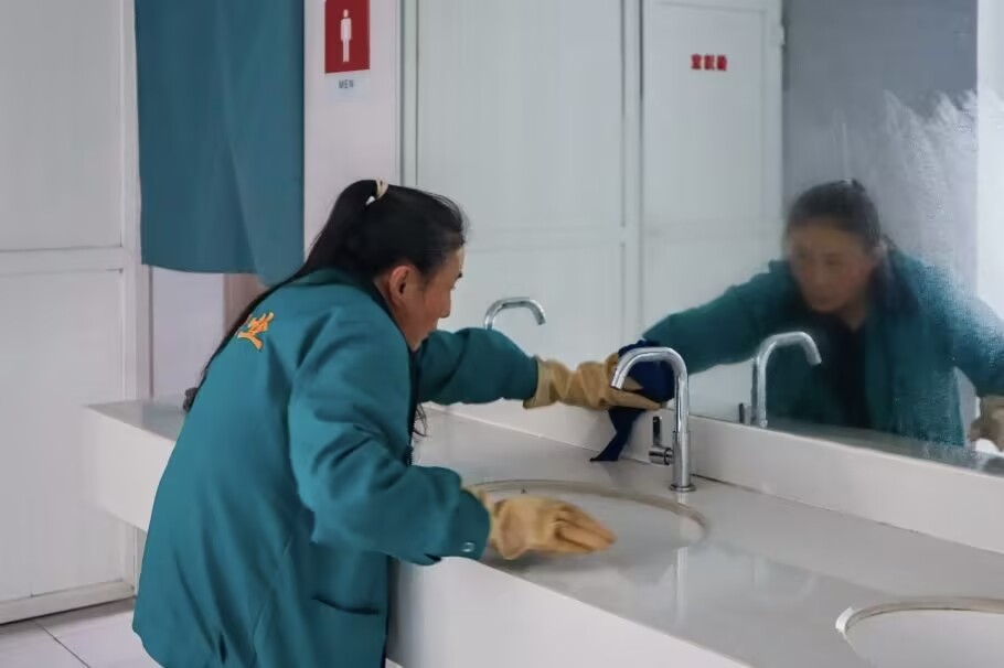 “共同的荣誉?”是这样的,过去三年时间的相处中,保洁阿姨早已把我们当作了她的同事,把我们的学生也当作了她的孩子。两个比她还高的拖布,是她最忠诚的伙伴。她打扫得不快,但极细致,瓷砖的缝隙,扶手的转角,不留一点污渍。这位六教五层年龄最大的同事,这位全勤劳模,总像个家长一样,细碎地关注着我们,巷子里值日生来打扫的时候,她却早已打扫干净,轻飘飘且笑盈盈地说:“阿姨顺手的事,你们好好上课就行。”而演讲比赛前,工作间隙她对着卫生间门口的镜子一遍遍练习,偶尔老师们路过还会给她一点指导和鼓励。六教这片小小的天地,每天都上演着我们之间细碎且温馨的美好。
